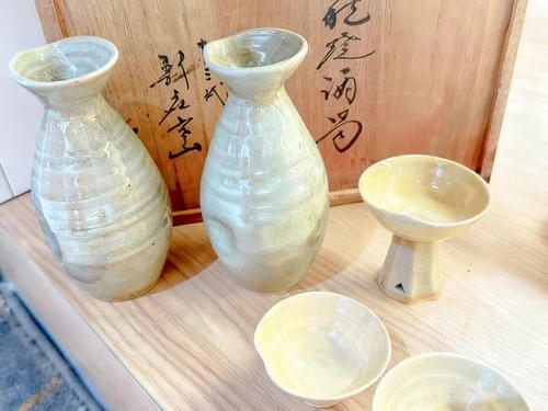 這套清酒器皿包括一個稱為「德利」(tokkuri)的酒壺和幾個稱為「御豬口」(ochoko)的酒杯