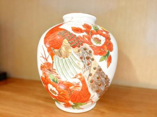 日本製 九谷燒 手繪 花鳥圖 花樽 無盒